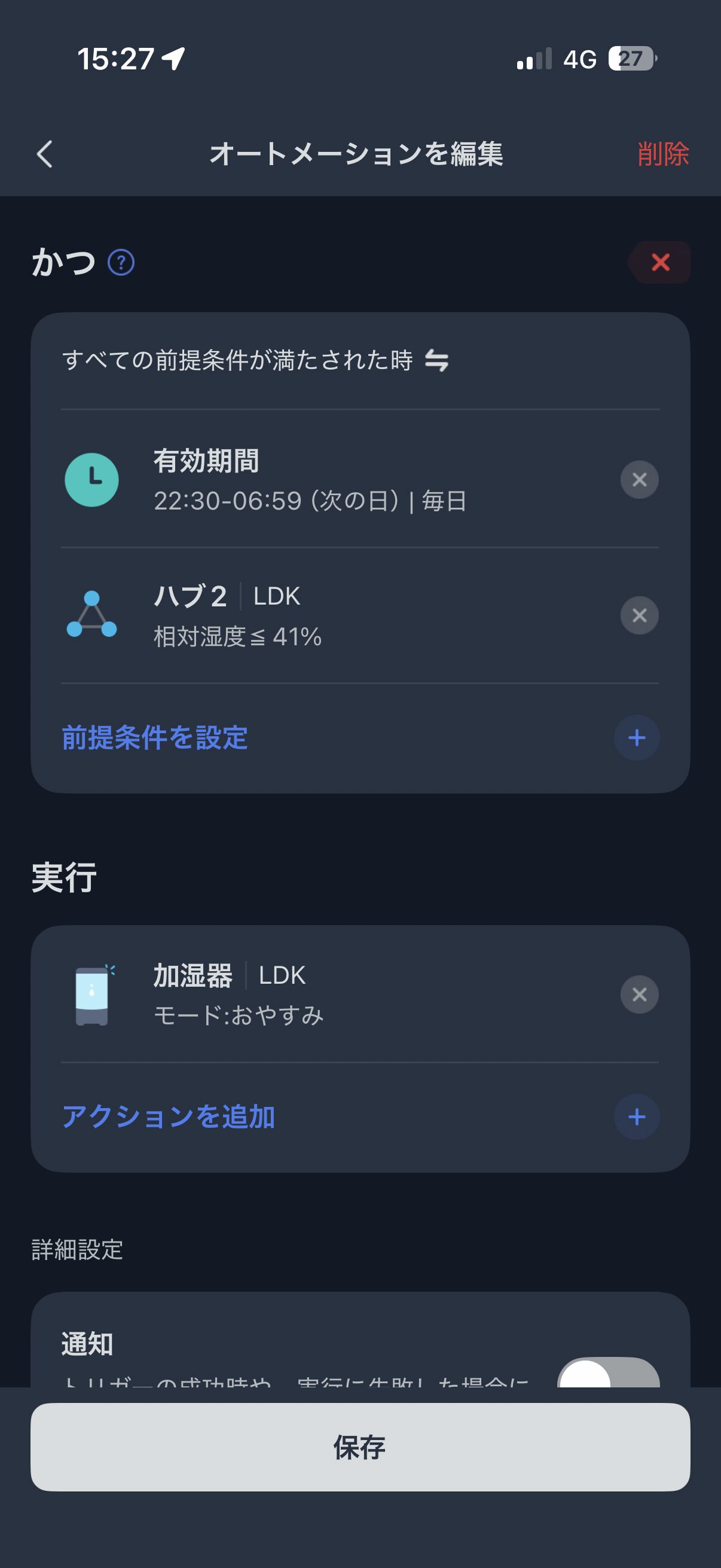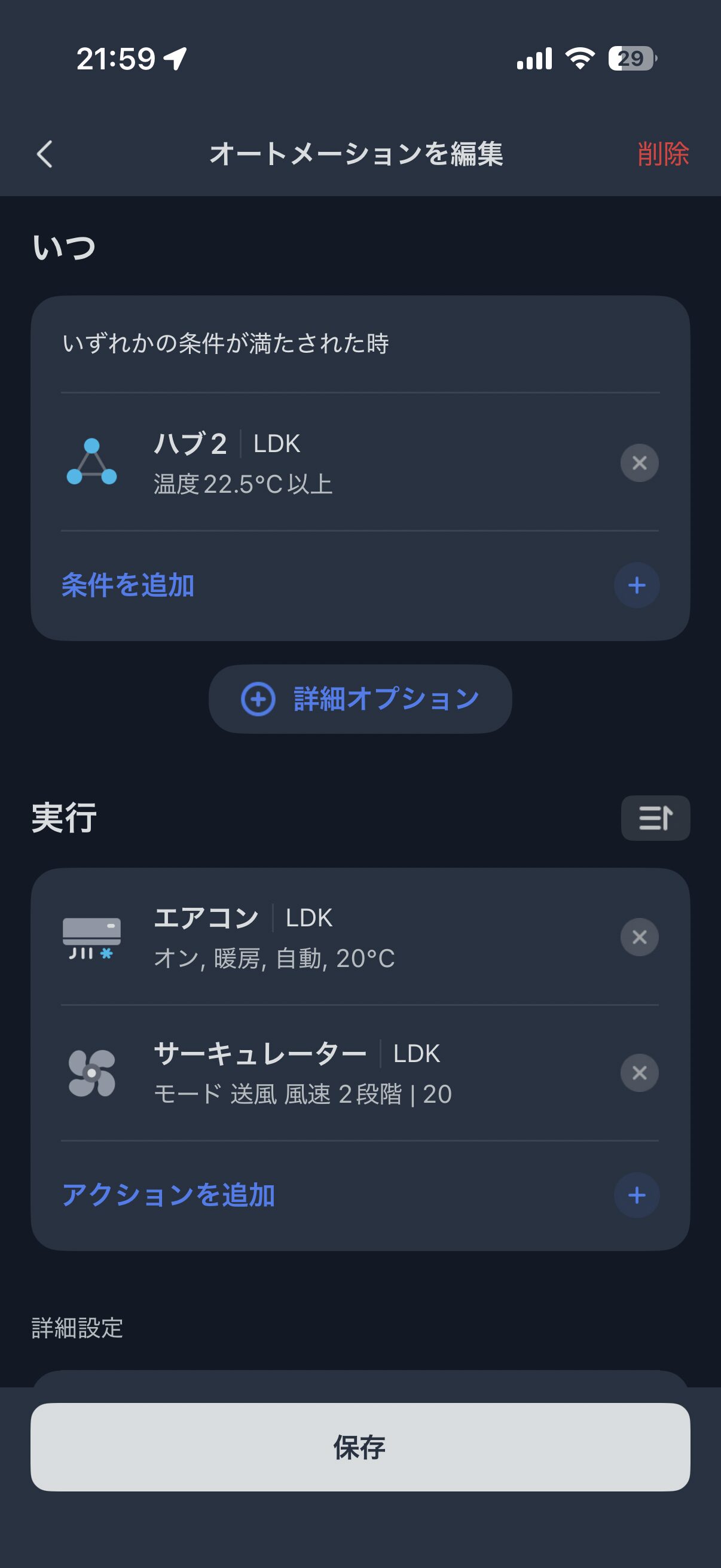 2つめは、部屋が暖まった状態を維持するために作った設定です