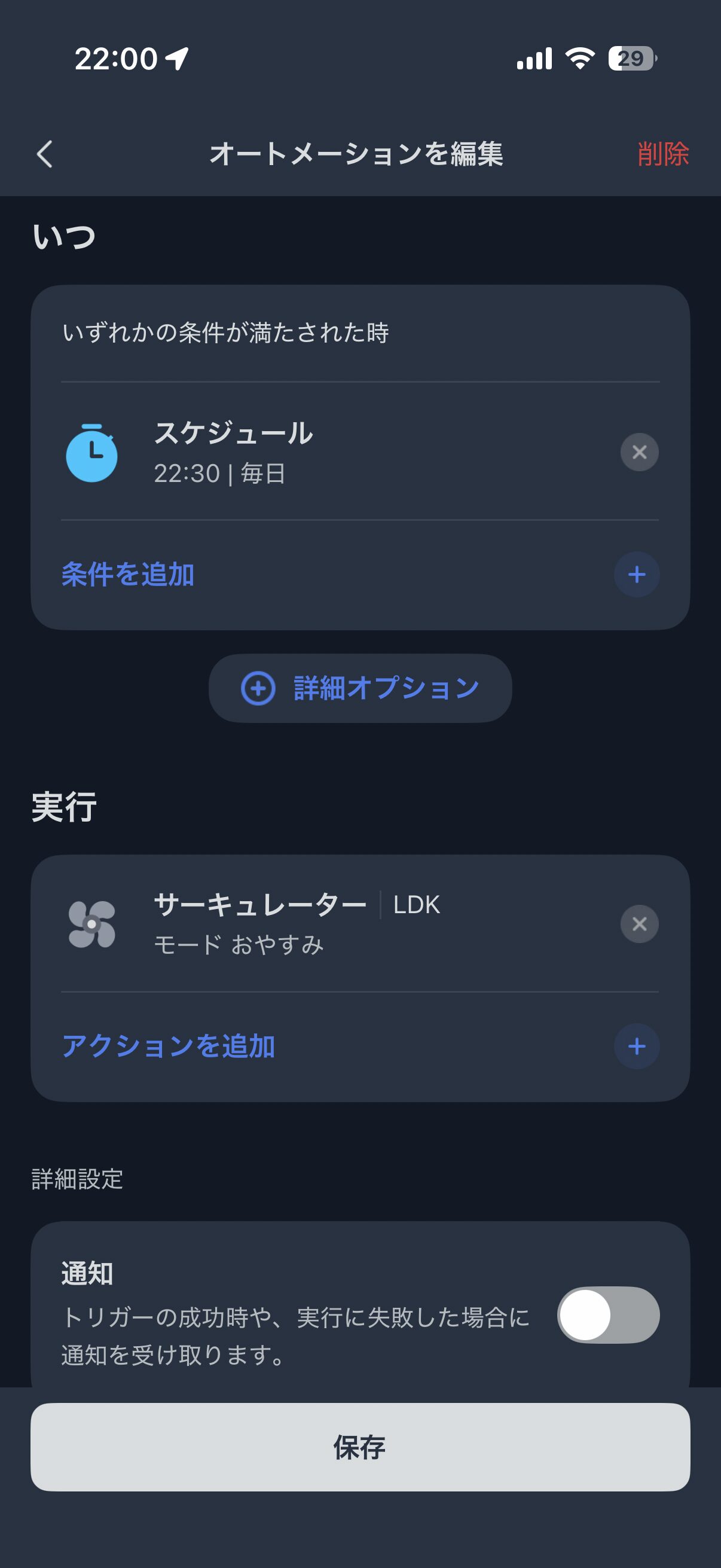 夜間 → サーキュレーター&加湿器をおやすみモード