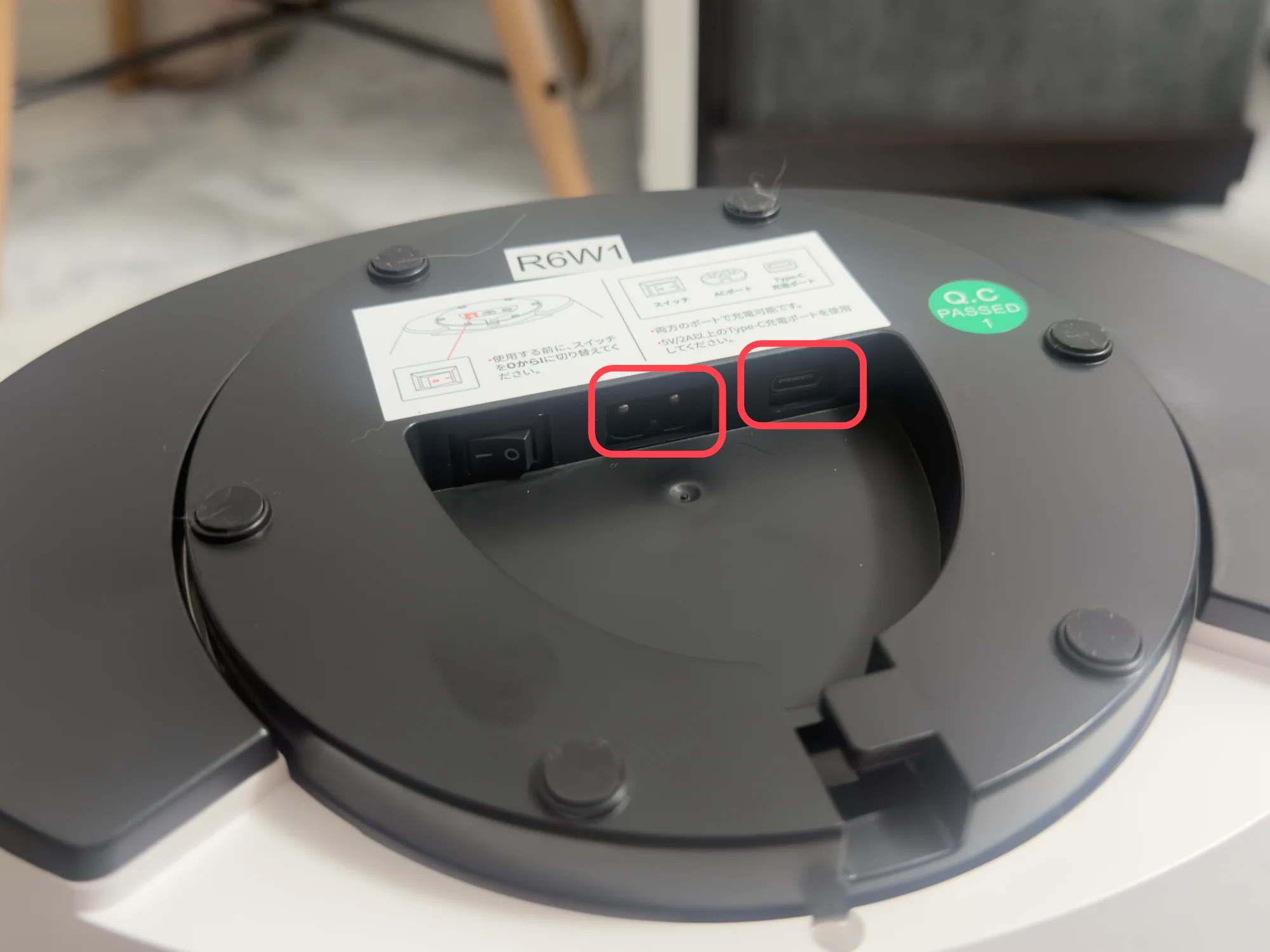充電ケーブルを挿す場所がサーキュレーターの底面にあるため、充電のたびにいちいち裏返す必要があります